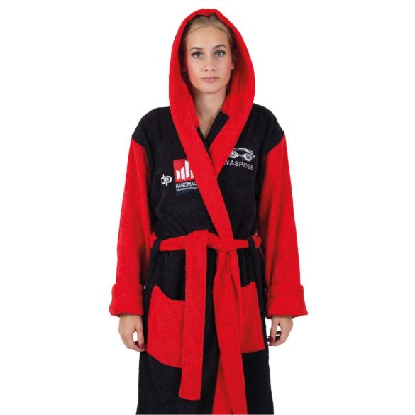 Der Frottee-Bademantel bietet dir dank reiner Baumwolle höchsten Komfort und eine sanfte angenehme Haptik. Er ist besonders saugfähig und sorgt dafür, dass du nach dem Schwimmen schnell und wohltuend trocken wirst. Der Stoff hält dich warm und das WASPO98 Logo (Im Bild wird das alte Logo dargestellt) zeigt deine Zugehörigkeit zum Verein!